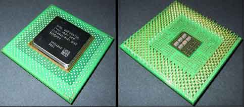 Vista Superior y Posterior de un Pentium 4 Willamete.